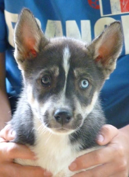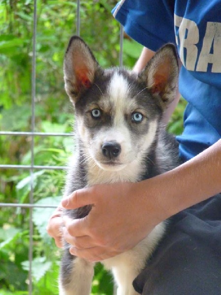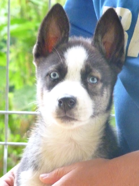 Mâle 2 Noir et blanc/ yeux bleus Parti chez Jean louis dans le 74 pour faire du mushing...