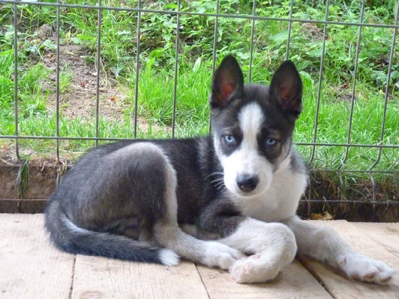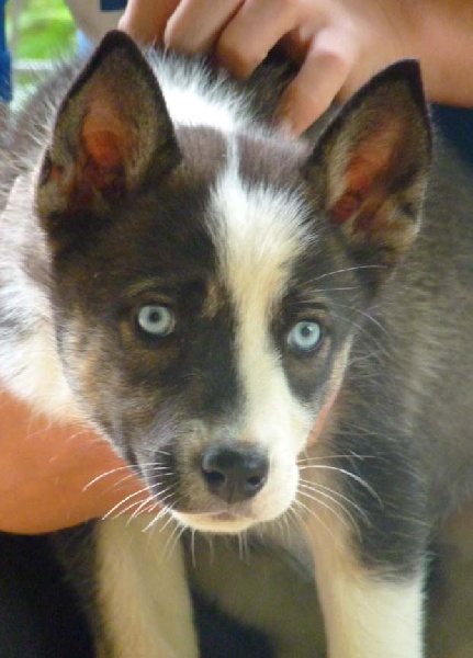 Mâle 1 noir et blanc yeux vairons Parti chez Laurent dans le 03 pour faire du mushing